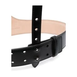 Forhøy antrekket ditt med denne fantastiske svarte skinnbeltet fra Alexander McQueen. Med sølvfarget hardware, dobbel spenne og justerbar passform er dette beltet det perfekte tilbehøret for enhver motebevisst kvinne. Laget av 100% skinn er dette beltet både holdbart og stilig. Designer ID: 594188 1BR0I 1000.
