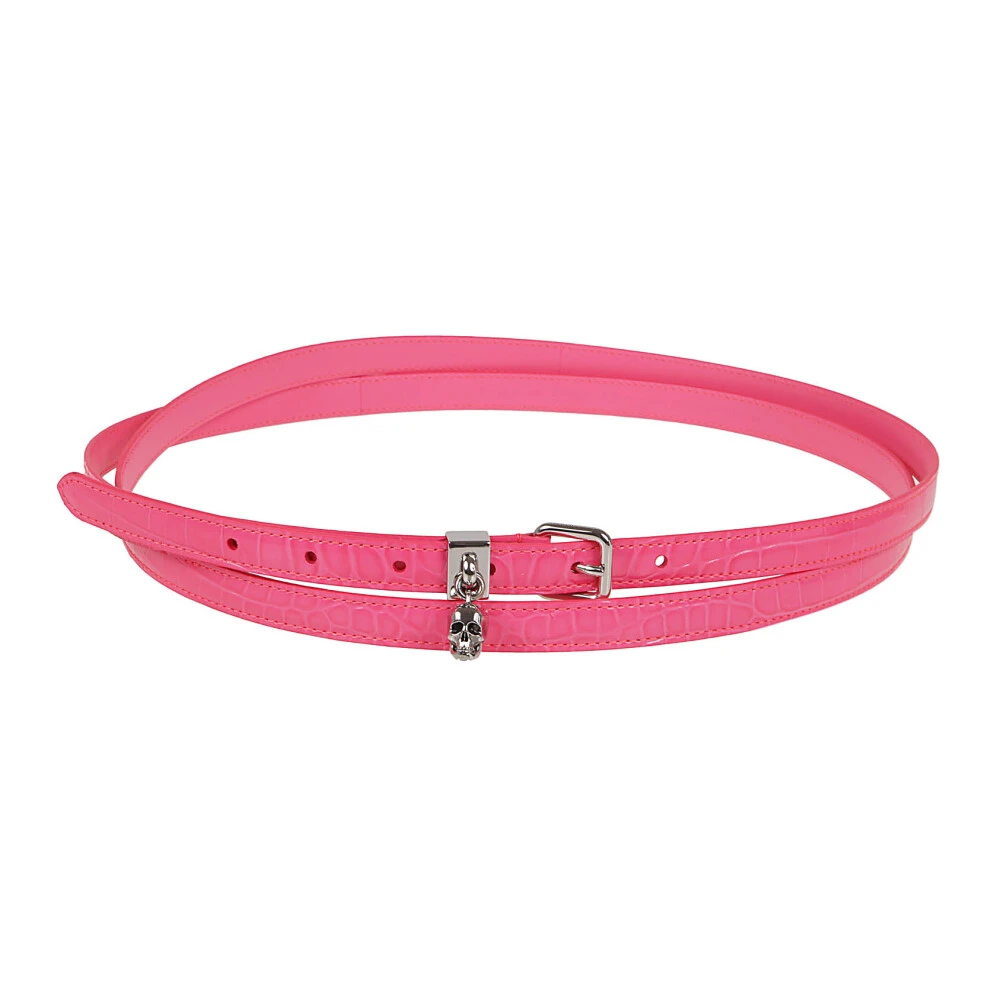 Legg til en pop av farge og kant til antrekket ditt med denne Alexander McQueen dobbeltbeltet i neonrosa. Det unike skalle-designet gjør det til et statement-stykke som er perfekt for enhver motebevisst kvinne.