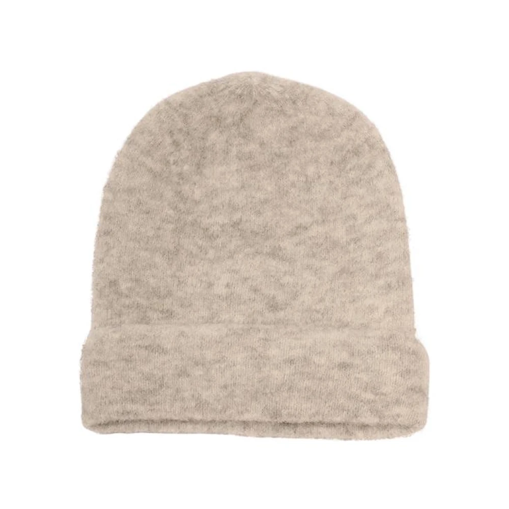 Enkel og anvendelig onesize lue i grått fra Arnie Says nye høstkolleksjon. Smal modell med oppbrett og litt ekstra volum på toppen. Finnes også i fargen dk navy. Detaljer: Modell: Bibi Farge: Lys gråemelert Materiale: 55% alpakka, 27% polyamid, 13% ull og 13% elastan. Vask: Maskinvask 30 grader på ullprogram