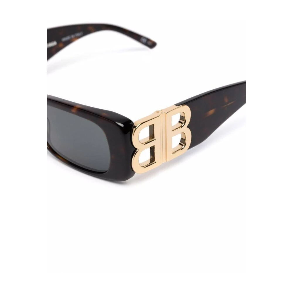 Forhøy stilen din med Balenciaga Dynasty rektangulære solbriller. Disse trendy rektangulære solbrillene har tonede linser, en hevet bro og avrundede ender. Det gullfargede logo-detaljen på tempelet legger til en touch av luksus til den mørke Havana designerfargen. Laget i Italia med 68% Acetat og 32% Polyester, er disse solbrillene et must-have for enhver motebevisst kvinne.