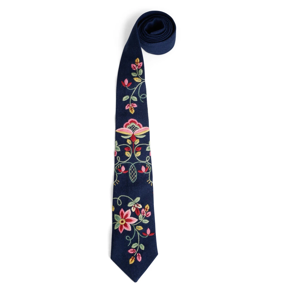 Nydelig håndbrodert bunadslips i ull. Broderiene er håndbrodert med mønster fra Lundebybunaden.