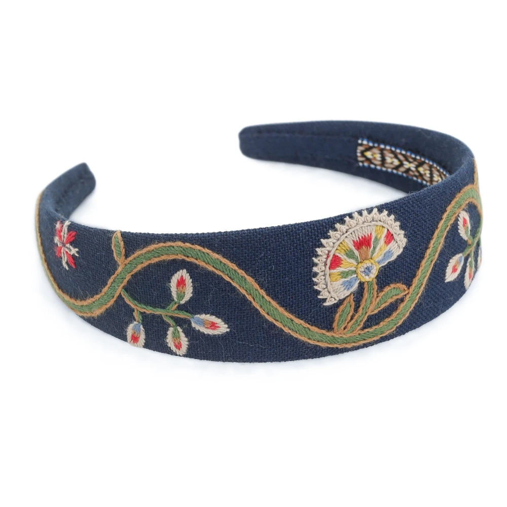 Hårbøylen er håndbrodert. Farge: blå