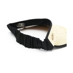 Borsalino Hats beige kontrasterende grensevisorhatt fra Borsalino med beige, vevd raffia-design, gulltone logobokstaver, kontrasterende grense og elask bånd.