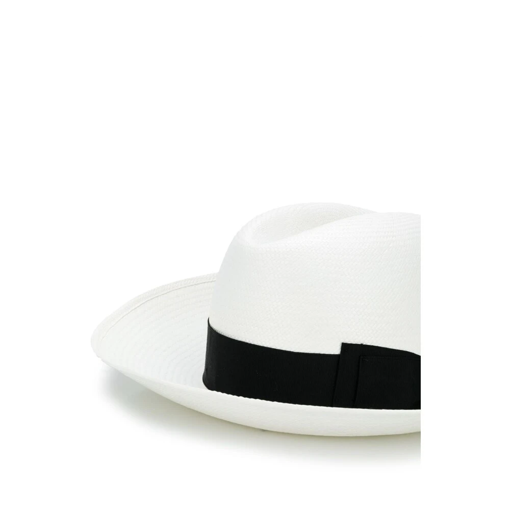 Borsalino Hats Black White and Black Strap Strap Detail Hat fra Borsalino med en vevd design.