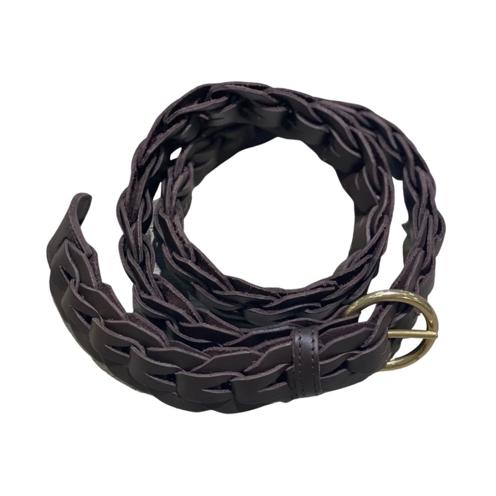 Braibe Belt er et lekkert flettet belte fra Cala Jade. Bredde 2,5 cm. Fargen heter Umber og kan beskrives som mørk brun med gullfarget metallspenne. Materiale: 100% kalveskinn