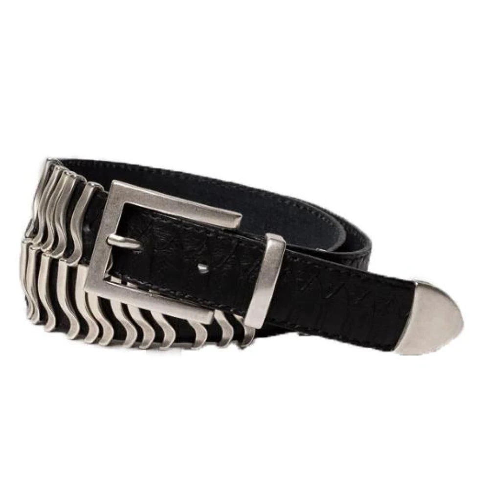 Detaljer: – Type: smalt belte – Farge(r): svartRattle Belt er bestselgeren til Cala Jade. Beltet er i sort skinn i slangemønster og detaljer i sølvbelagt metall. Den perfekte prikken over i´en på antrekket for å lage en med edgy look.Tips: Velg en lengre lengde å lage en trendy silhuett ved å knyte beltet ved spennen.Bredde: 3 cm Materiale: Skinn og metall