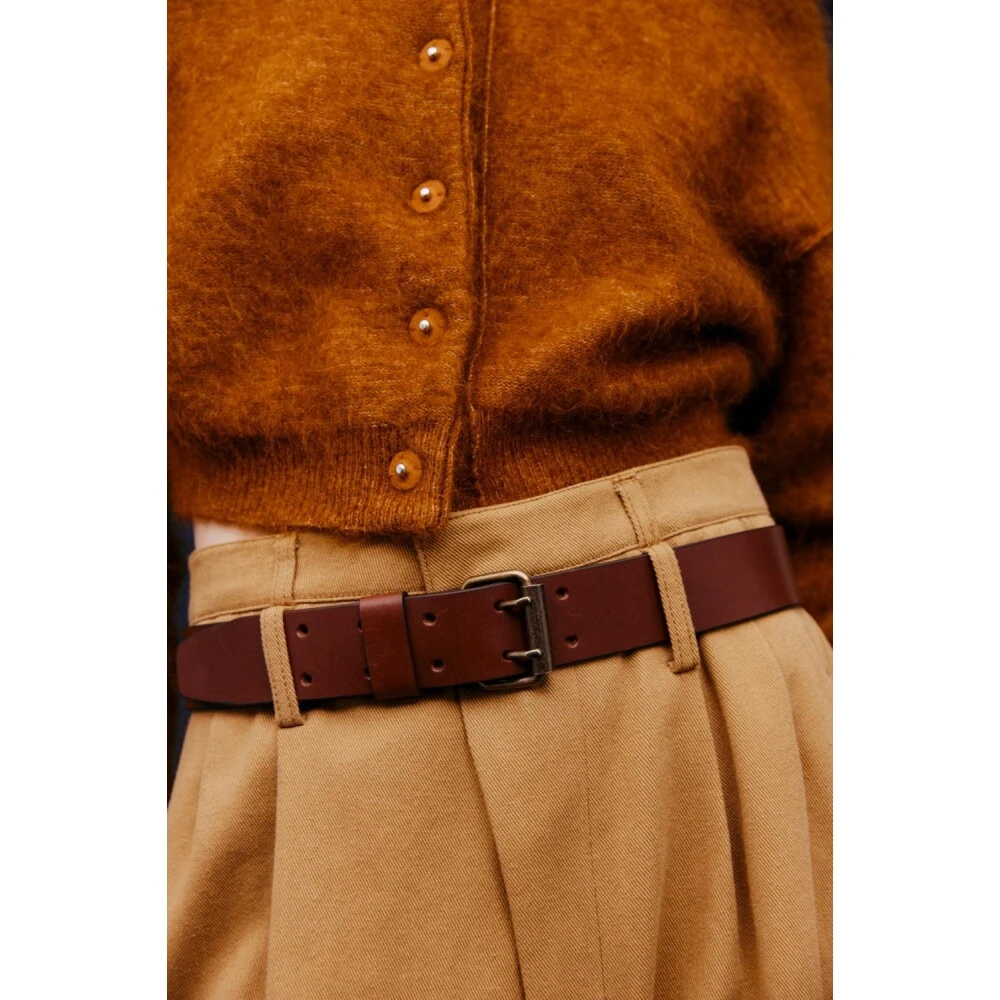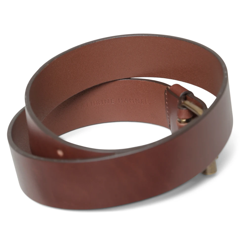 Navn : Cathrine Hammel Leather belt Farge: Mørk Brun Beskrivelse: Lærbelte med metallspenne og 2 hull. Str: 75-85-95 Materiale: 100 % lær