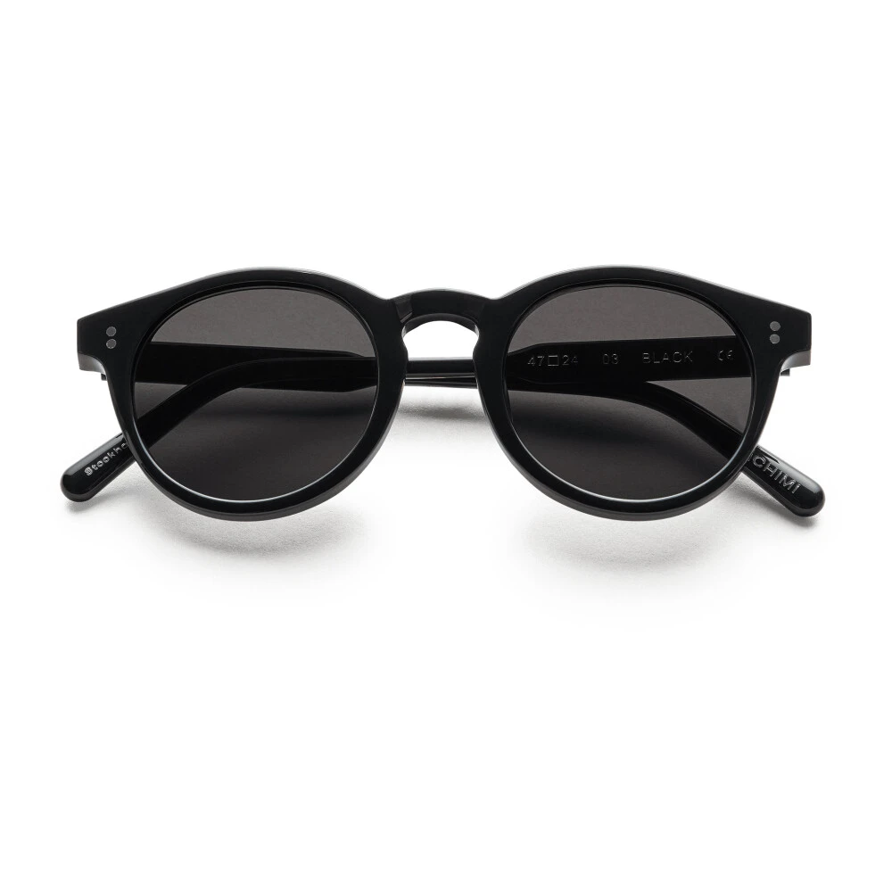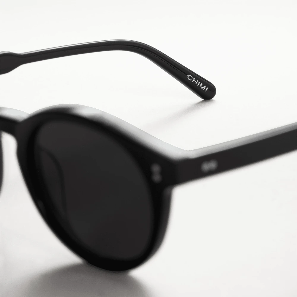 Black 03 fra Chimi Eyewear. Sofistikerte solbriller som er designet for å passe alle anledninger. Et klassisk rundt design i en oppdatert versjon. Kommer i svart innramming og svarte glass. Merkets logo inngravert på innsiden. Tidløse briller du kan ha år etter år.Lens Kategori: 3 Lens: CR39 (100% UV) Polarised Mål: Frame width: 140mmLens width: 47mmNose bridge: 24mmTemple length: 145mmMateriale: Håndlaget med Italiensk Acetate og CR-39 glass med 100% UV beskyttelse.