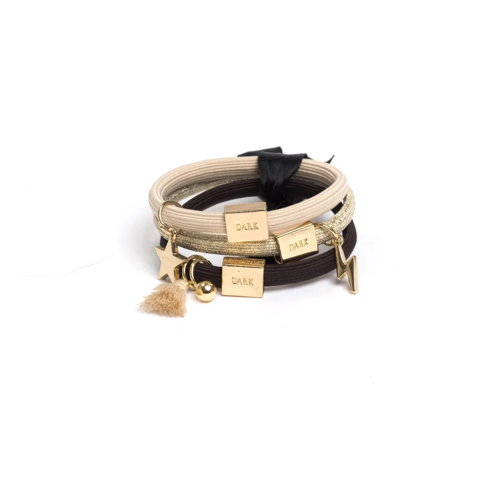 Denne mørke Hår Bind 3-pakke Charm Combo Sjokolader er det perfekte tilbehøret til enhver kvinnes garderobe. Settet inkluderer tre gullbelagte smykker for et stilig utseende. Stil-ID 1571714017 sikrer at du alltid er oppdatert. Legg til et streif av glamour til enhver stil med dette must-have-hårtilbehøret.