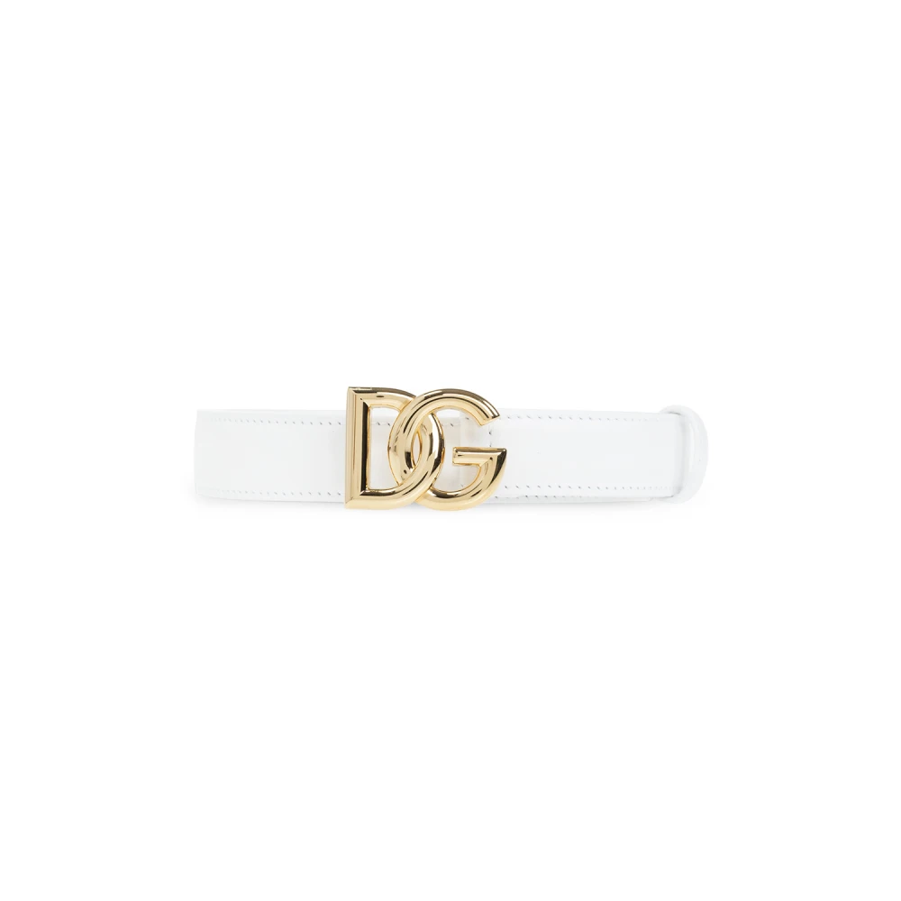 Fullfør antrekket ditt med denne vakre Dolce Gabbana beltet for kvinner. Det hvite kalveskinnsbeltet har det ikoniske DG-logoet og en gullfarget metallspenne. Laget av 100% kalveskinn, er dette tilbehøret både stilig og holdbart.