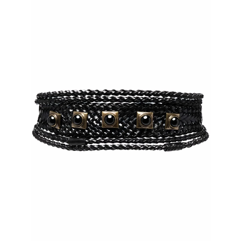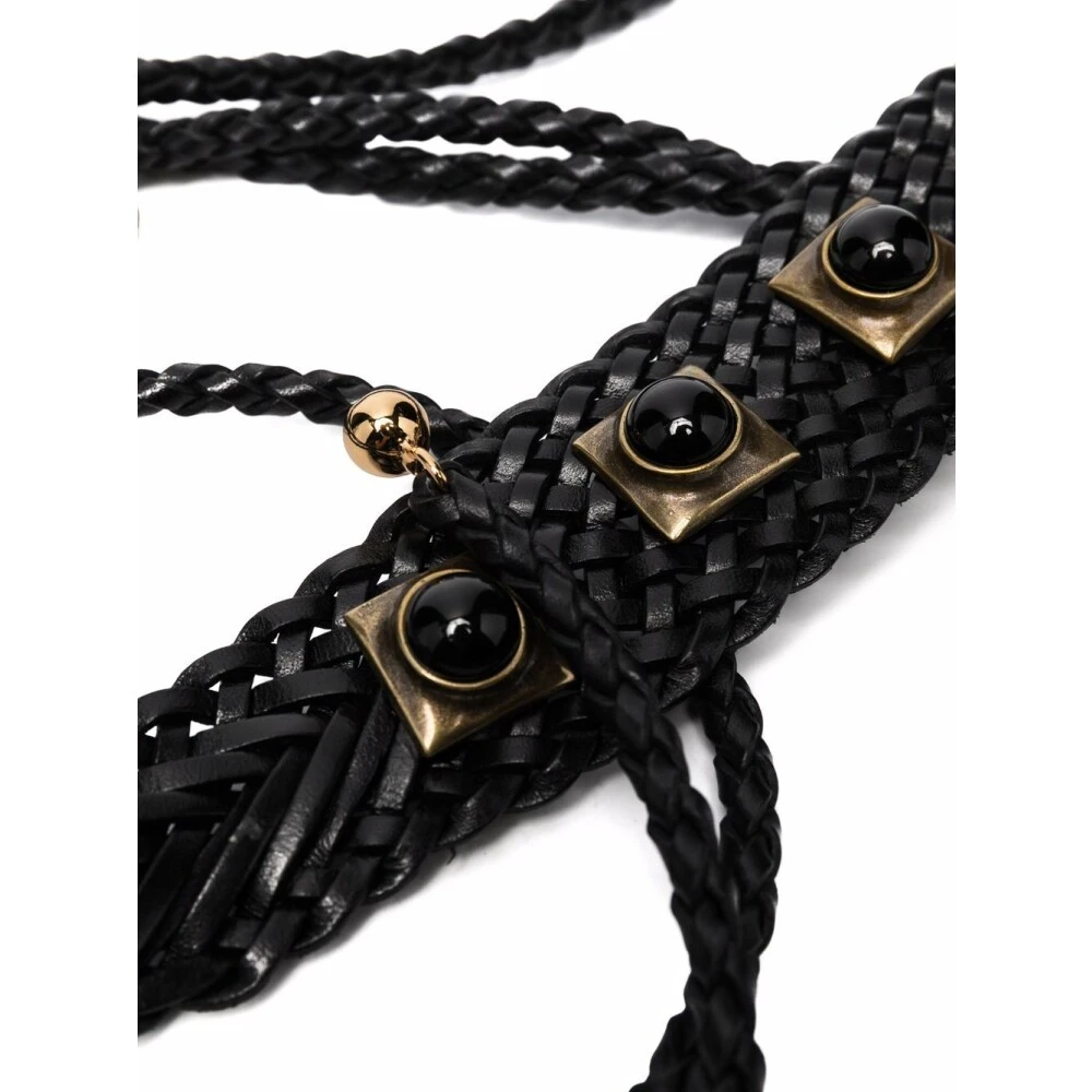 ETRO Belter Black Leather Studded Leather Belt fra ETRO med sammenvevd design, studdetaljer og bakre bindefeste.