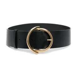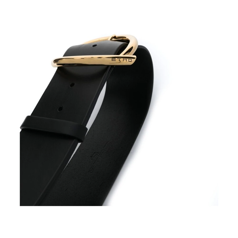 Etro belter svart runde-buckle skinnbelte fra etro med svart, kalveskinn, gullfargede spenne-festing, stansede hull og justerbar passform.