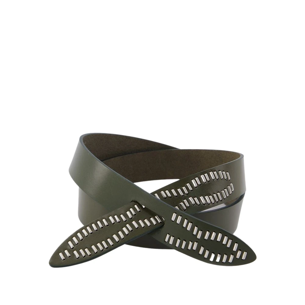 Fullfør stilen din med Isabel Marant Lecce Belte i Khaki Lær. Dette allsidige tilbehøret er den perfekte avningen på ethvert antrekk og legger til en touch av eleganse til utseendet ditt. Laget av høykvalitets lær, vil dette beltet vare lenge og passe perfekt til enhver garderobe.