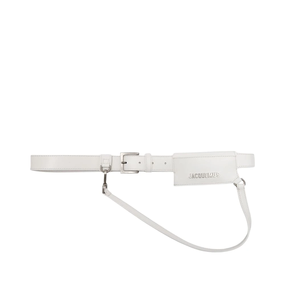 Slitt med plisserte bukser eller med jeans, er dette beltet fra Jacquemus innbegrepet av stil og funksjon kombinert. Det absolutte høydepunktet er den lille kortholderen og Jacquemus -logoen i gullbokstaver. Spenne bredde: 4 cm. Materiale: 100% kalveskinn. Fôr: bomull. Farge: Blanc – hvit. Lukking: Beltet med spenne. Bredde: 1. Høyde: 3. Lengde: 6.