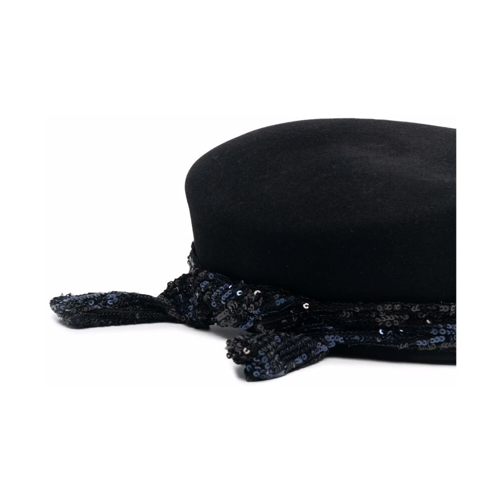 Maison Michel Hats Black Black Rabbit følte Logo-Plaque Baker Boy Cap fra Maison Michel med logo-plakk, paljettpynt, skjerfdetaljer og buet topp.Denne beskrivelsen er automatisk oversatt.