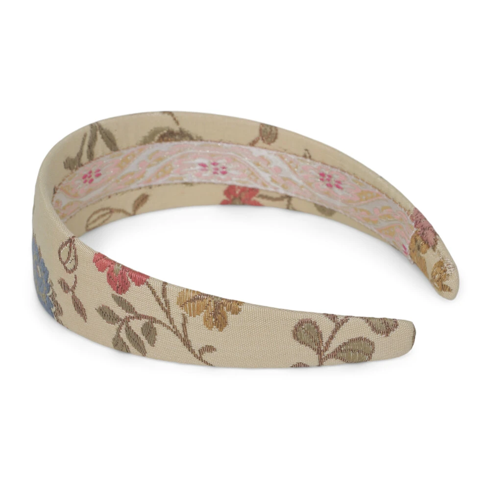 Hårbøylen er håndlaget. Stoffet er orginalstoff fra Norge. Broderiene varierer fra hårbøyle til hårbøyle.