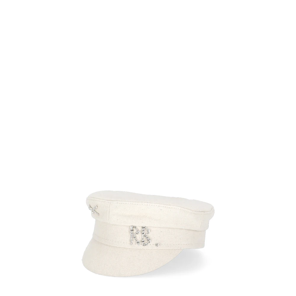 Ruslan Baginskiy Hats Beige – Beige Ruslan Baginskiy Cotton Woman Baker Boy Cap – Rigid Visor – Front -logo med krystaller