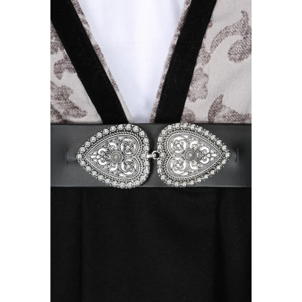 Nydelig bunadsbelte i skinn med metallspenne i bunadsmønster.