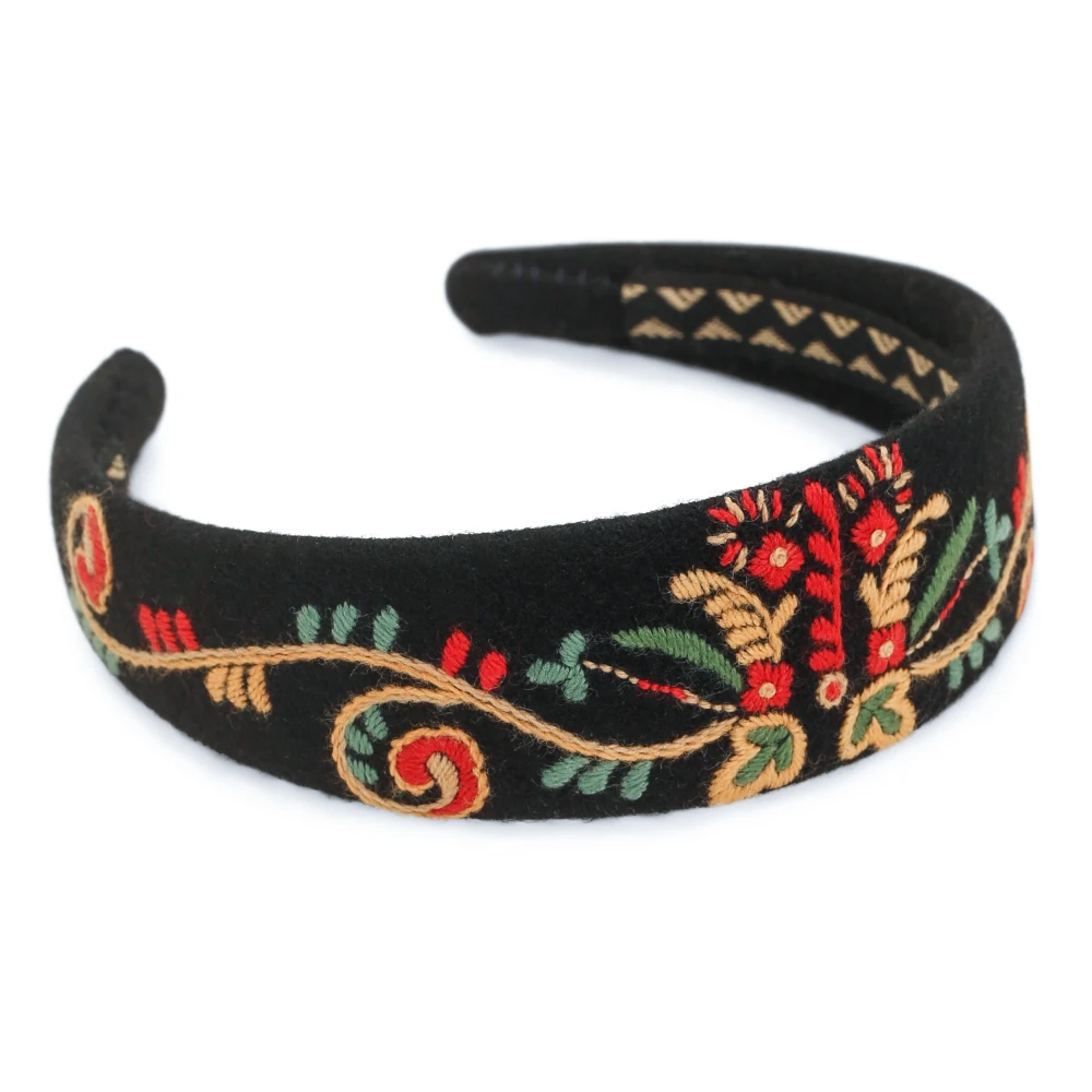 Blå hårbøyle til Nye Vestfold bunaden . Håndlaget.