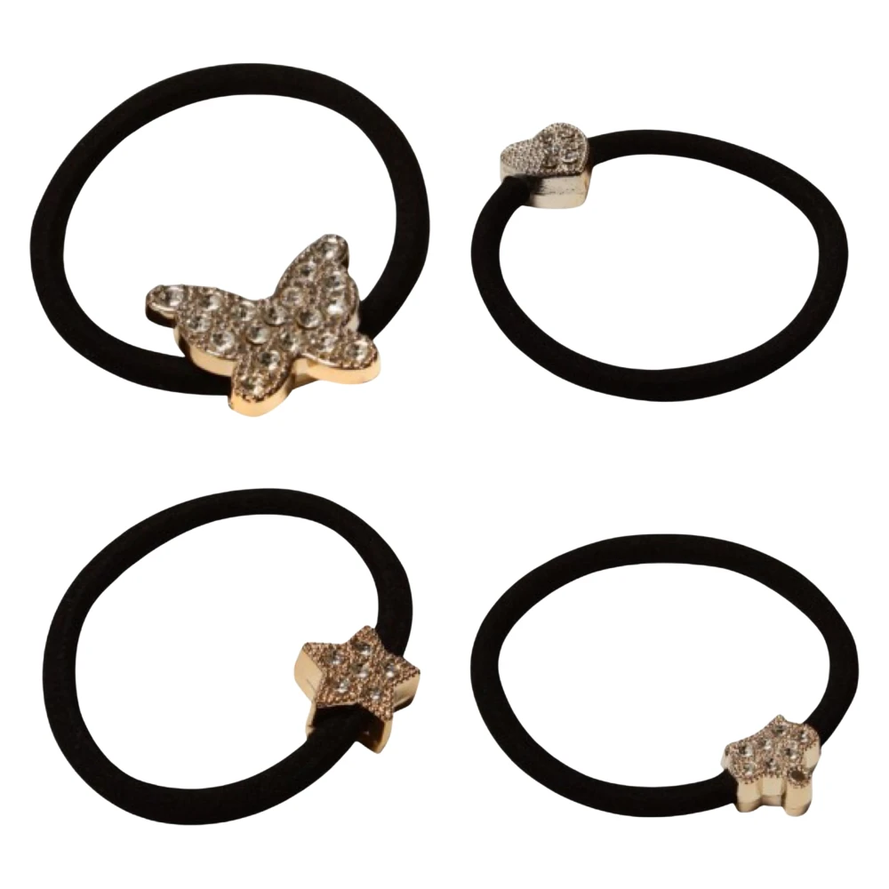 Nydelige svarte hårstrikker med strasspynt- stor sommerfulg, hjerte, stjerne og krone.
