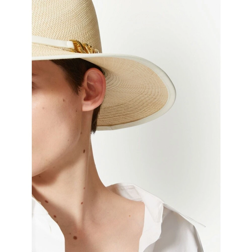 Fullfør antrekket ditt med denne vakre Valentino Garavani hatten. Laget av beige kalveskinn, har den en antikk messing-finish VLogo kjede metall detalj og en grosgrain indre bånd med Valentino logo print. Laget i Italia, er denne hatten det perfekte tilbehøret til enhver motebevisst kvinne.