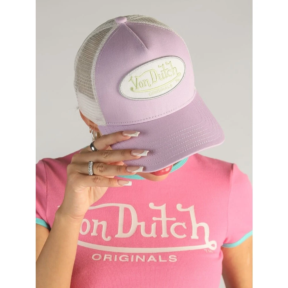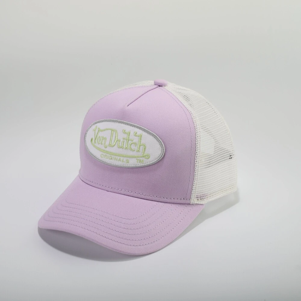 Trucker Boston fra Von Dutch. De ikoniske capsene fra Von Dutch er tilbake. Trucker Boston er en klassisk trucker caps med pustende mesh bak og stor, brodert logopatch i front. Capsen har hvit netting, hvit brodert logo og lilla stoff, og regulerbar størrelse. – Von Dutch logopatch- Pustende mesh bak- Buet brem- Justerbart panel- One Size